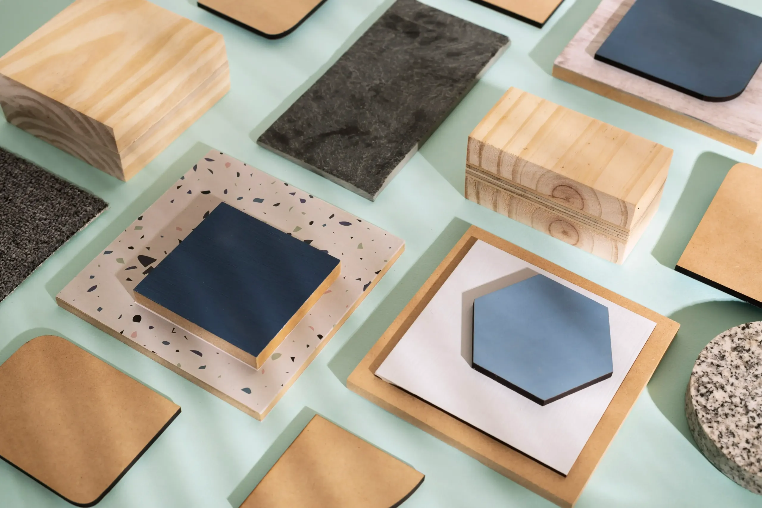 - مزج خامات (خشب + رخام + معدن)